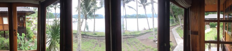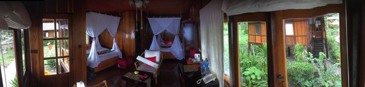 We were taken to our rooms, although the resident cats did distract me on the way, and I could not have been prepared for the quality of the rooms that I saw. Wooden stilted structures protruded up from the ground. They pointed me to my room (the right one in the image below) and I marvelled at the almost tree house feel of it. As I ascended the steps and opened the door I saw two double beds, a table area and my own large bathroom. This would be perfect for storing my camera gear with space for setting up and the view out across the Lembeh Straits from my high vantage was breath taking, I truly was in a tropical paradise.